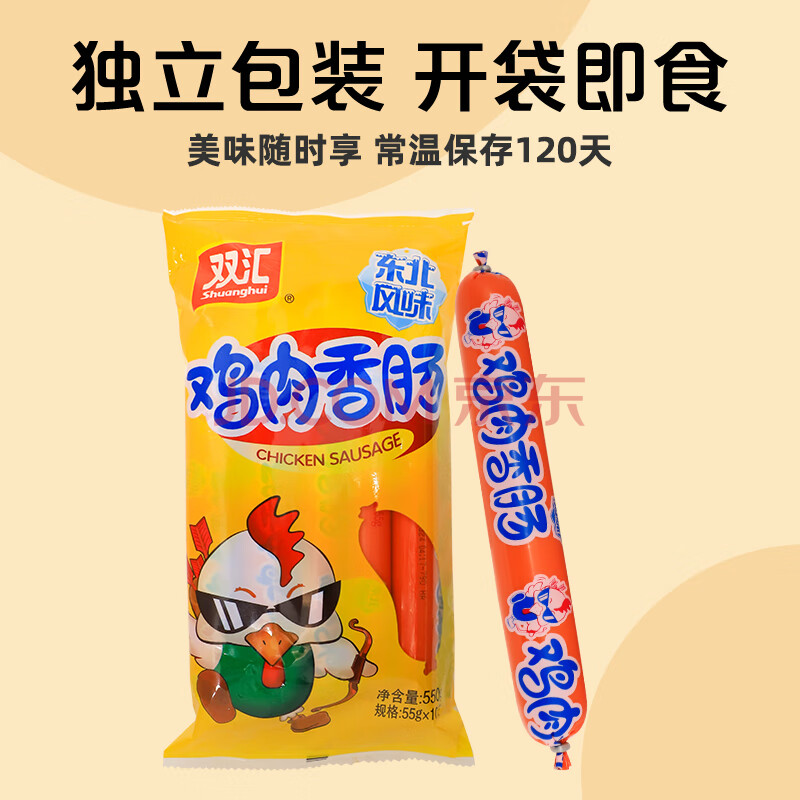商品相册:双汇 鸡肉火腿肠香肠 550g/袋 鸡肉火腿肠 休闲零食 露营 出游 烧烤第