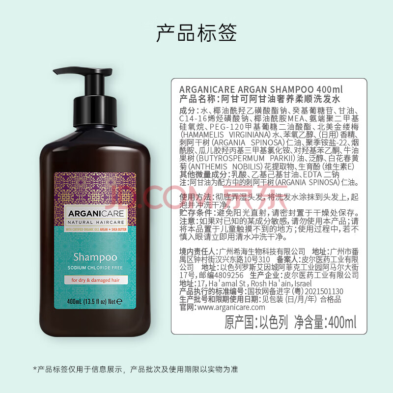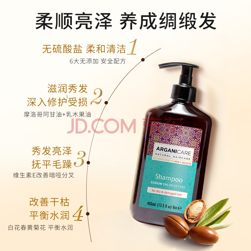 商品相册:阿甘可进口摩洛哥阿甘油修护洗发水400ml柔顺改善干枯烫染受损洗发露c第