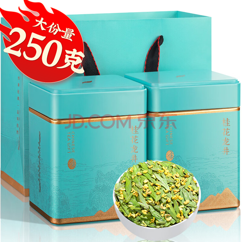 商品相册:福茗源绿茶 桂花龙井茶 豆香明前2026新茶春茶叶礼盒送长辈250g搭丹桂花第