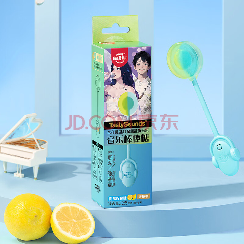 商品相册:阿麦斯(amos) 音乐棒棒糖 12g/支 儿童礼物 海盐柠檬味无糖糖果 休闲零食 喜糖第