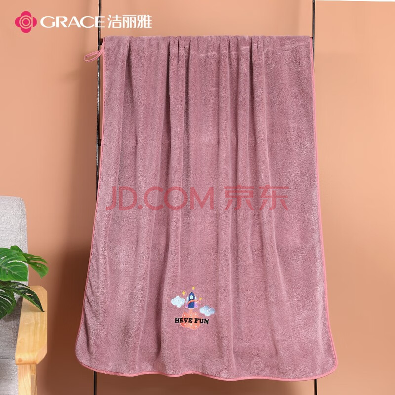 商品相册:洁丽雅 Grace 浴巾成人家用男女吸水刺绣加厚超大号裹巾90*180cm幽兰紫第
