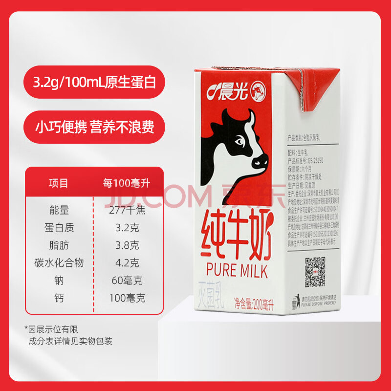 商品相册:晨光牛奶全脂灭菌乳纯牛奶200ml*12盒常温早餐奶 整箱 年货礼盒第