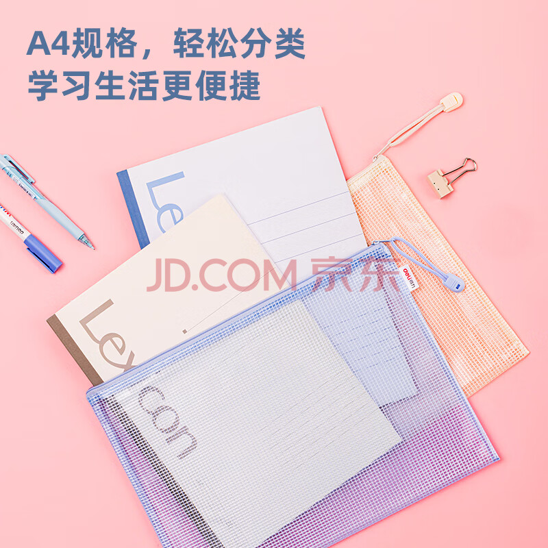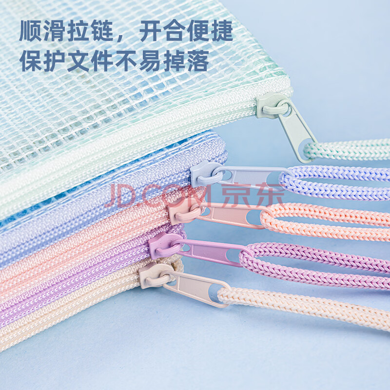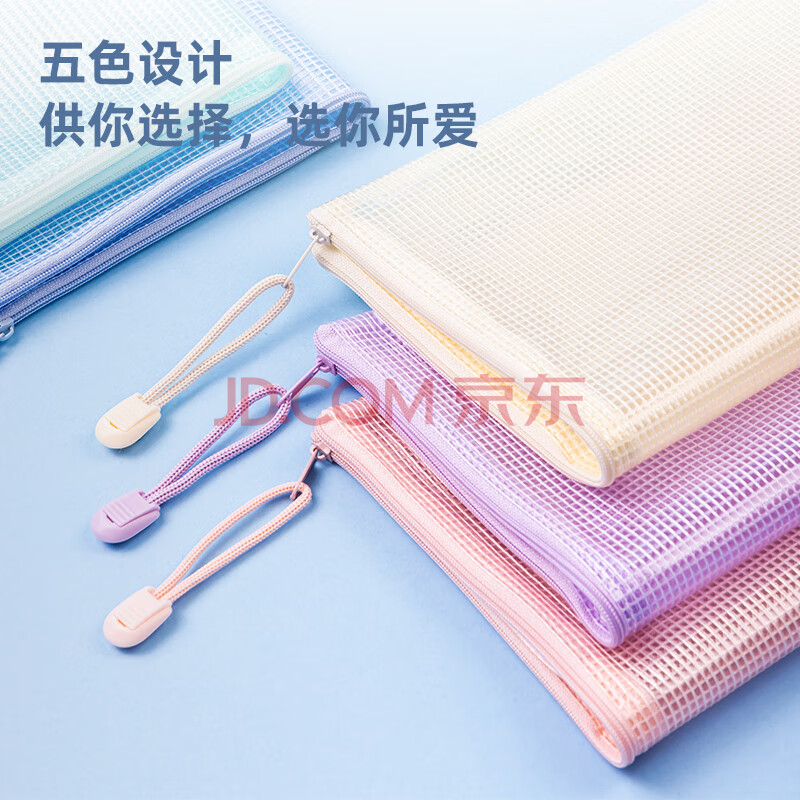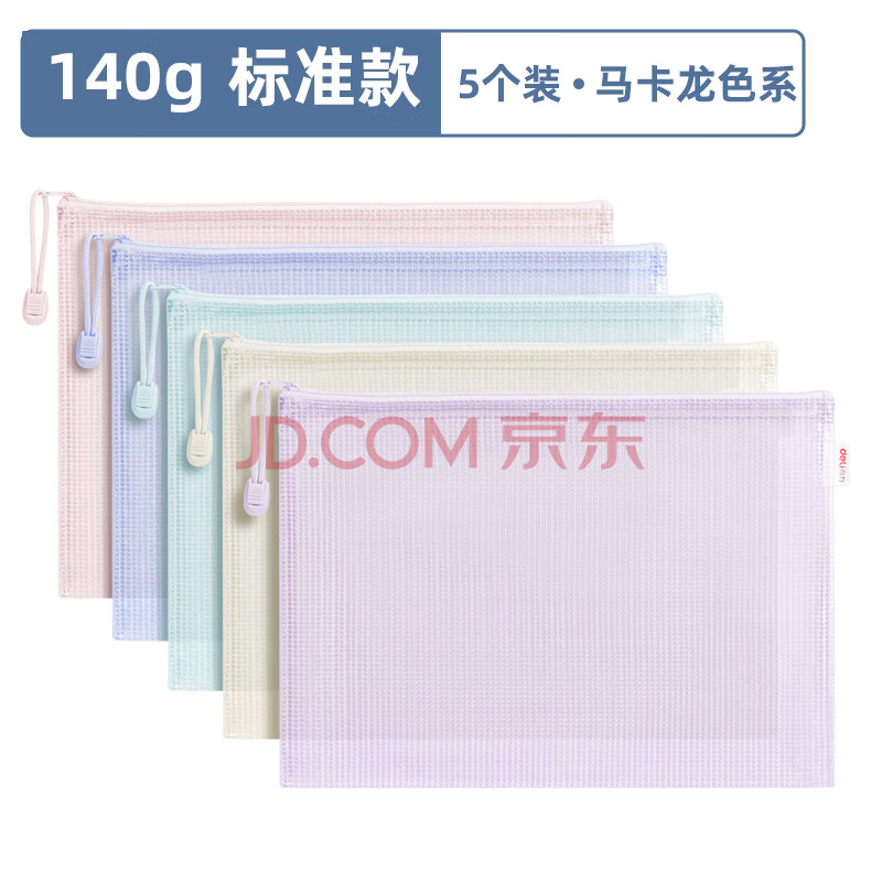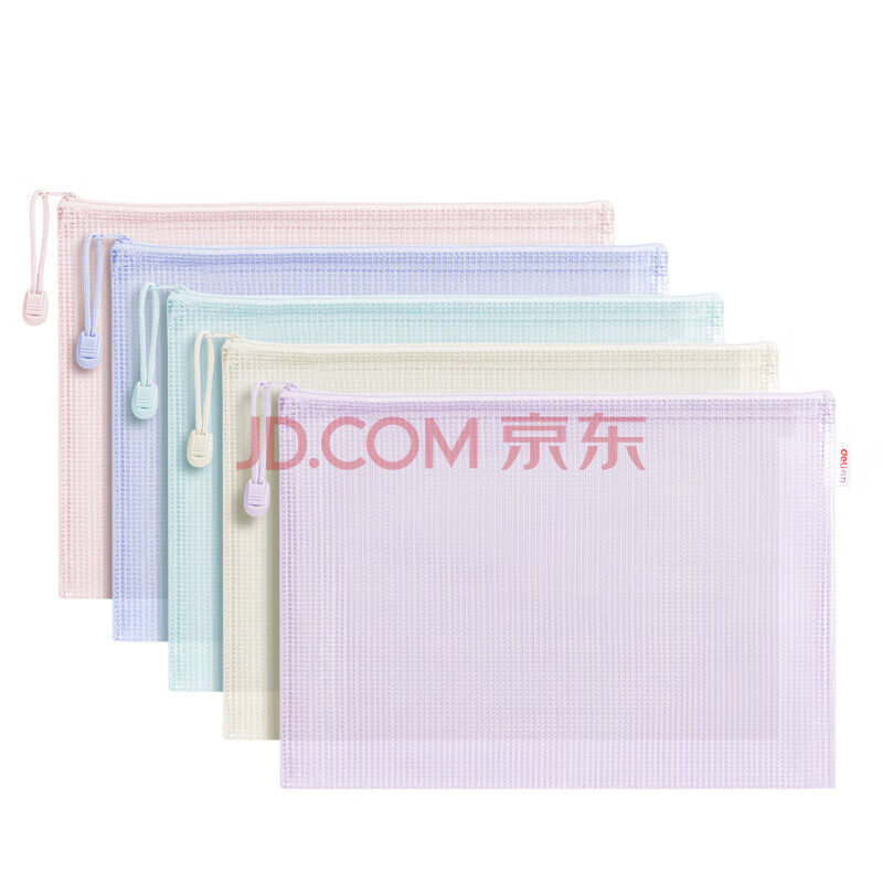 商品相册:得力(deli)5只A4网格拉链袋文件袋学生科目分类袋 马卡龙色系混色63481A第
