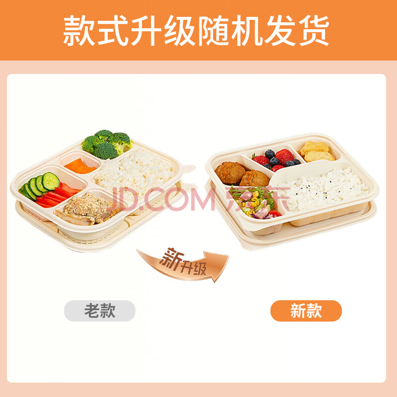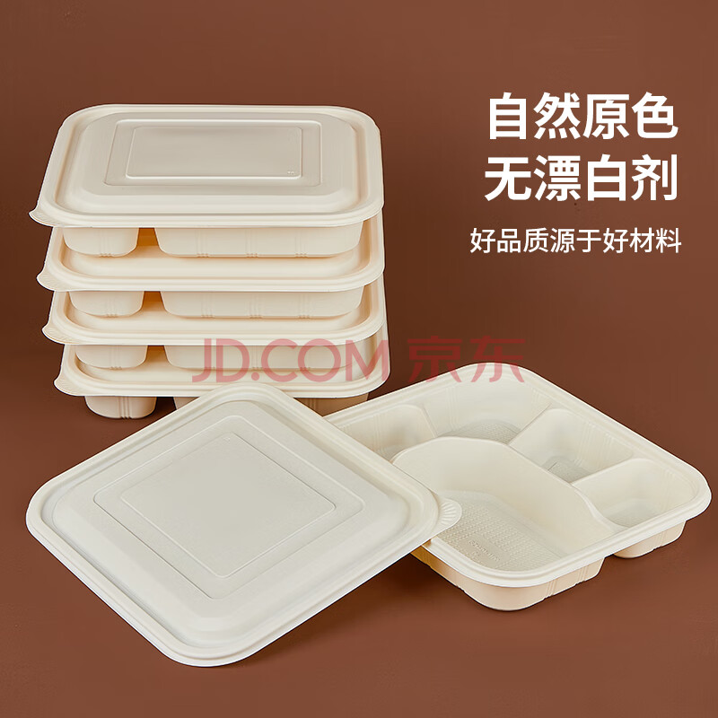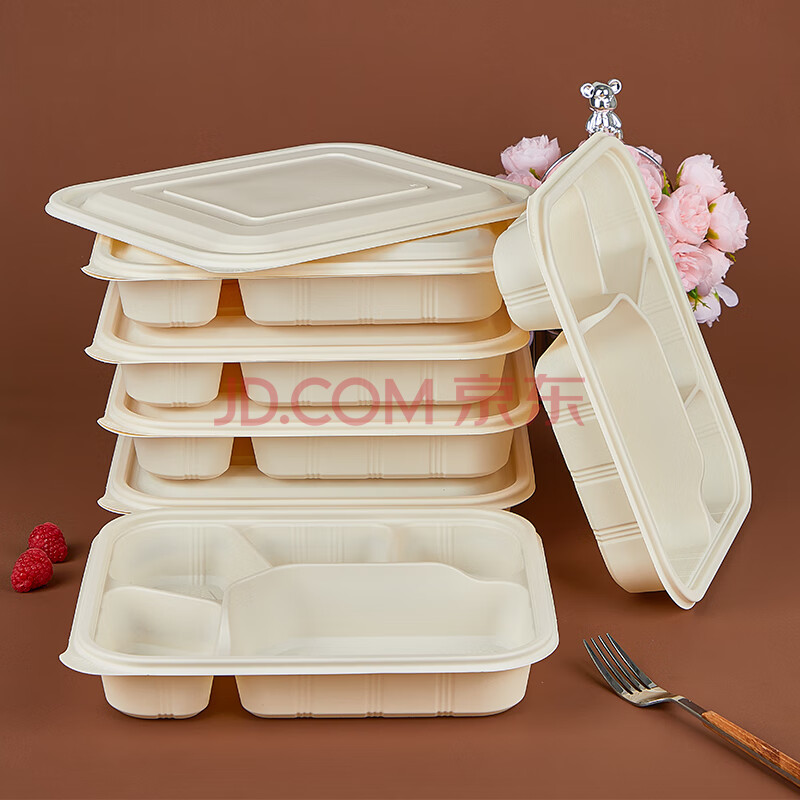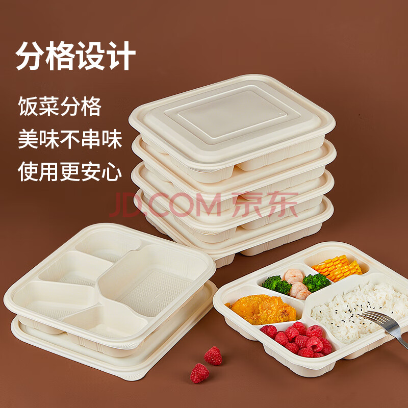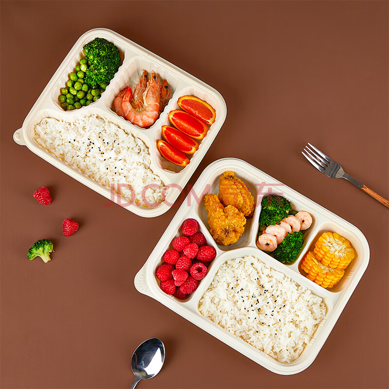 商品相册:SHUANG YU一次性饭盒50套*1100ml玉米淀粉可降解五格分格餐盒环保打包盒第