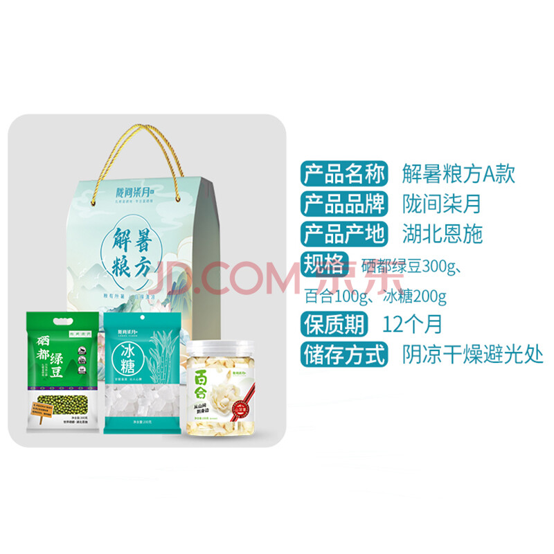 商品相册:陇间柒月 解暑粮方防暑降温A款600g 绿豆+百合+冰糖 企业工会员工福利团购第