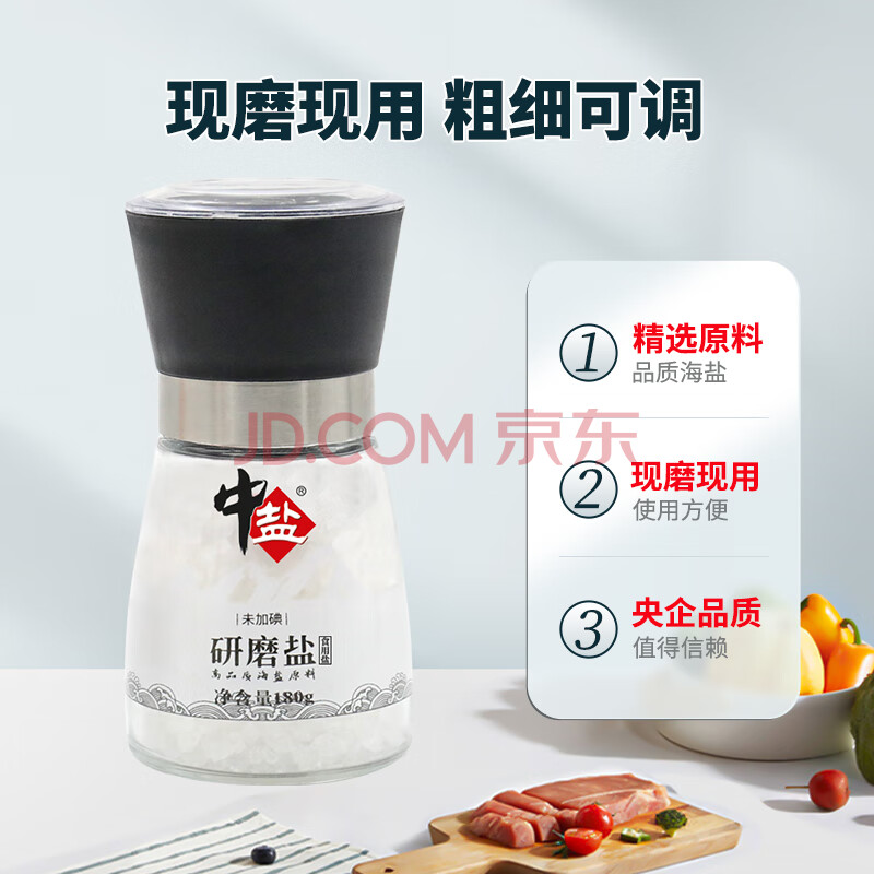 商品相册:中盐 研磨盐180g【未加碘】自带研磨器 无碘海盐 粗细可调节 中盐出品第