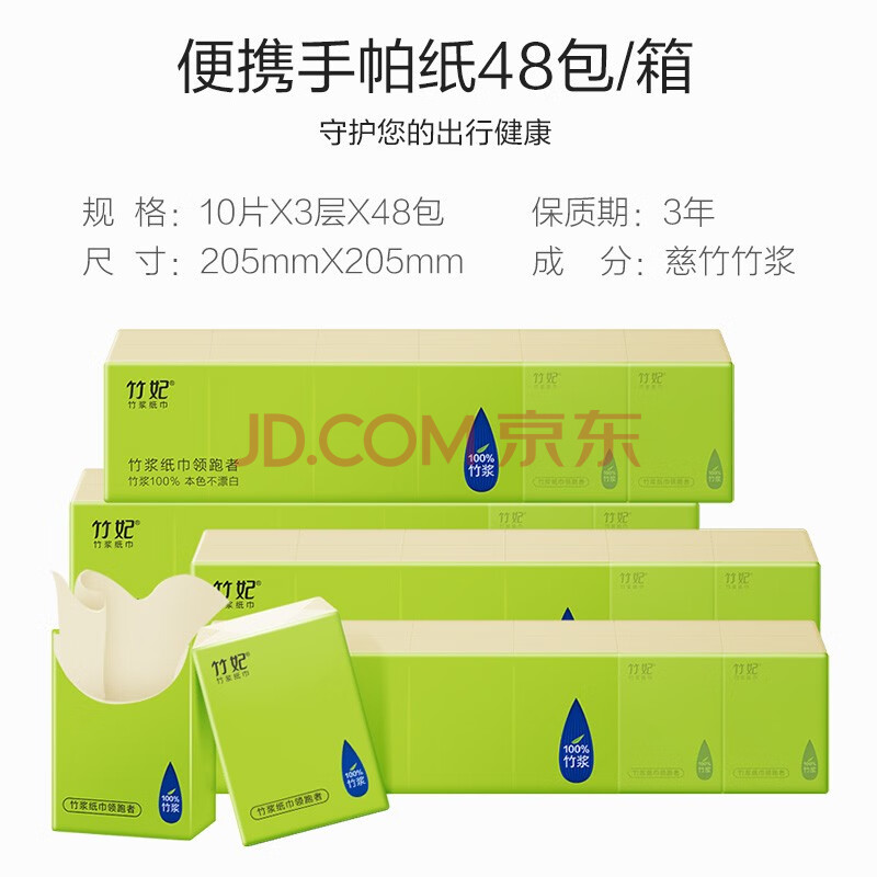 商品相册:竹妃 zofee 手帕纸迷你小包纸巾3层10片*48包本色面巾纸卫生餐巾纸第1张/共5