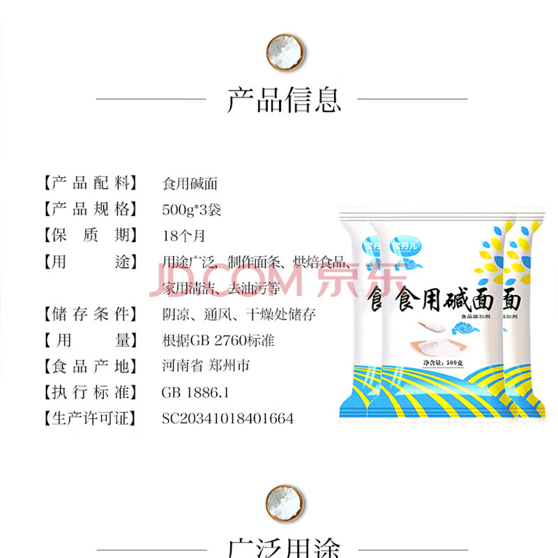 商品相册:蜜丹儿食用碱面1斤*3袋 烘焙原料纯碱 蒸包子馒头点心发酵粉 清洁去污第