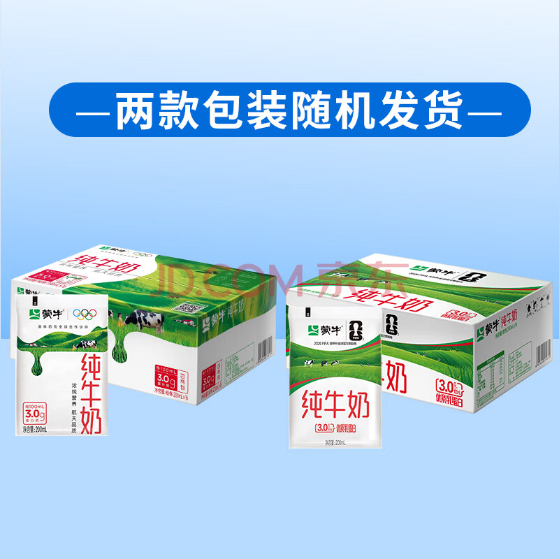 商品相册:蒙牛纯牛奶百利包200ml*16袋整箱儿童学生营养早餐牛奶礼盒装第
