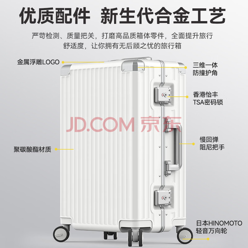 商品相册:漫游行李箱拉杆箱大容量男女高颜值旅行箱包密码箱皮箱子24英寸珍珠白第