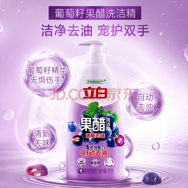 商品相册:立白 果醋洗洁精1kg浓缩洗涤精葡萄籽果醋精华去除果蔬农残去重油第
