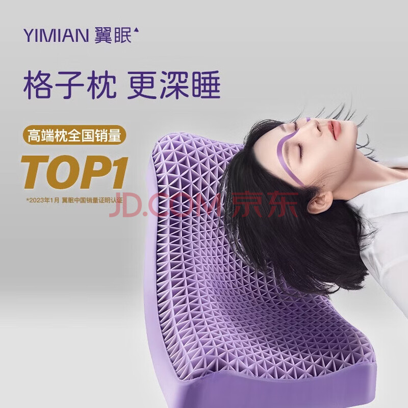 商品相册:翼眠非乳胶枕头成人深睡格子枕释压舒睡贴合头强透气可水洗经典枕紫色第