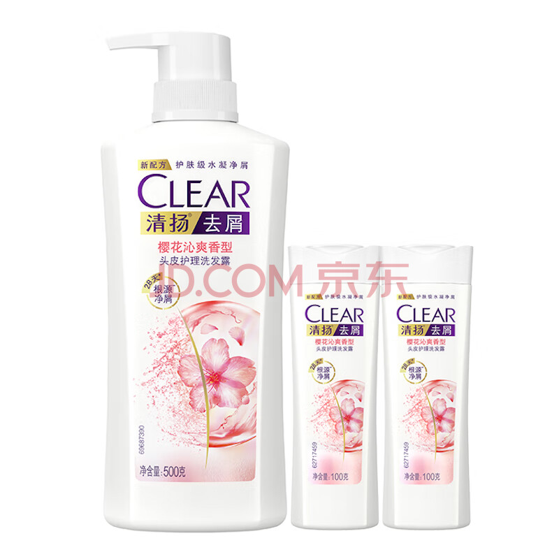 商品相册:清扬女士去屑洗发水 樱花沁爽500g+试用装100gx2 烟酰胺净屑止痒留香第