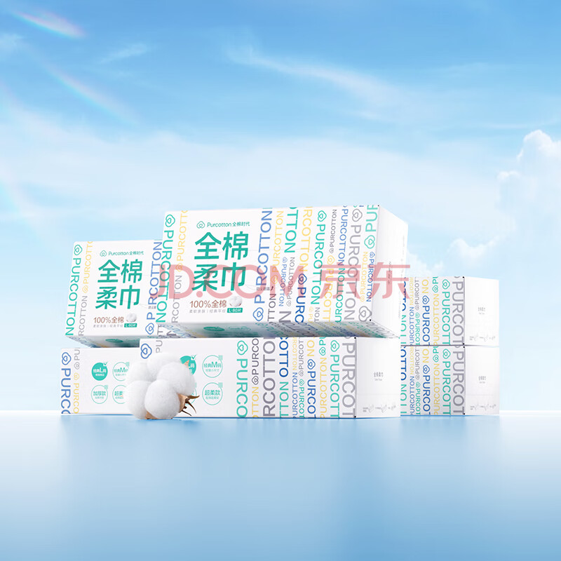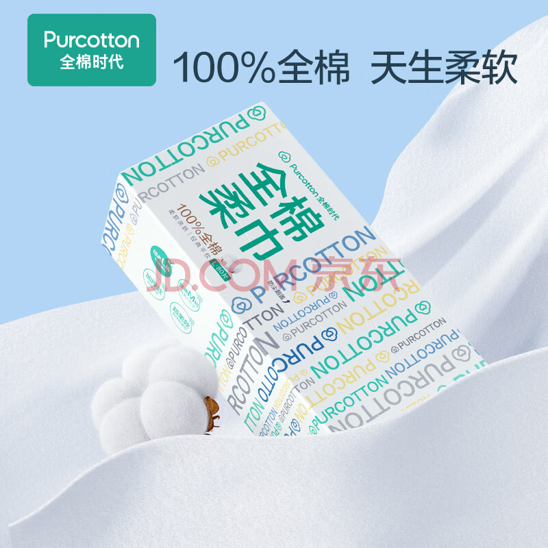 商品相册:全棉时代 洗脸巾棉柔巾一次性洁面巾干湿两用100%纯棉盒装80抽*6盒第
