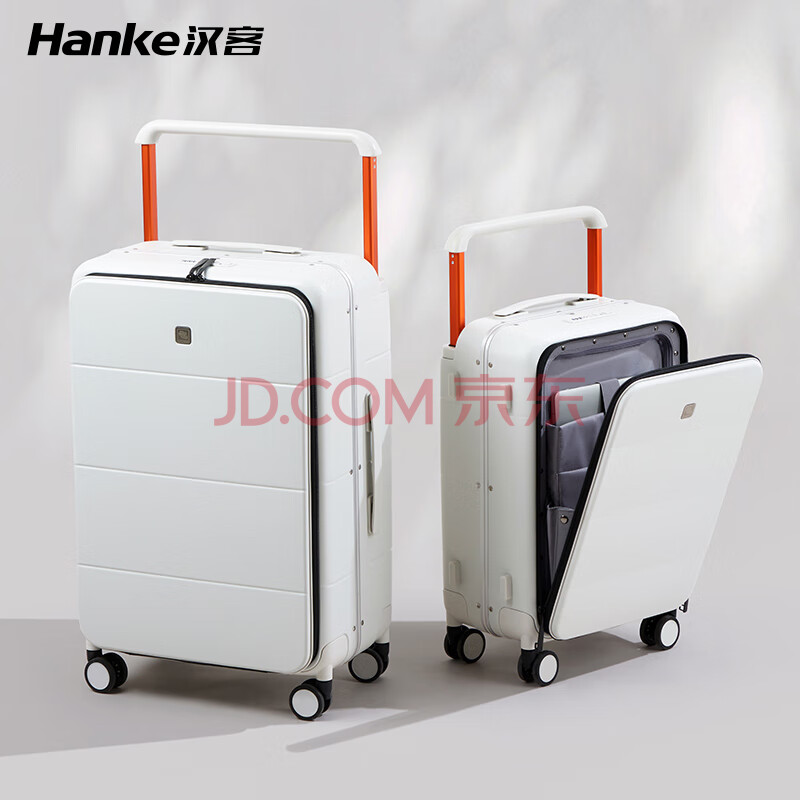 商品相册:汉客宽拉杆行李箱铝框男前开盖拉杆箱女旅行箱20英寸烟白色登机密码箱第