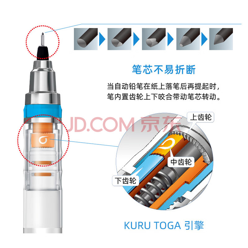 商品相册:uni三菱 KURUTOGA自动铅笔 0.7mm不断铅绘图学生考试活动铅笔M7-559 白色 单支装第
