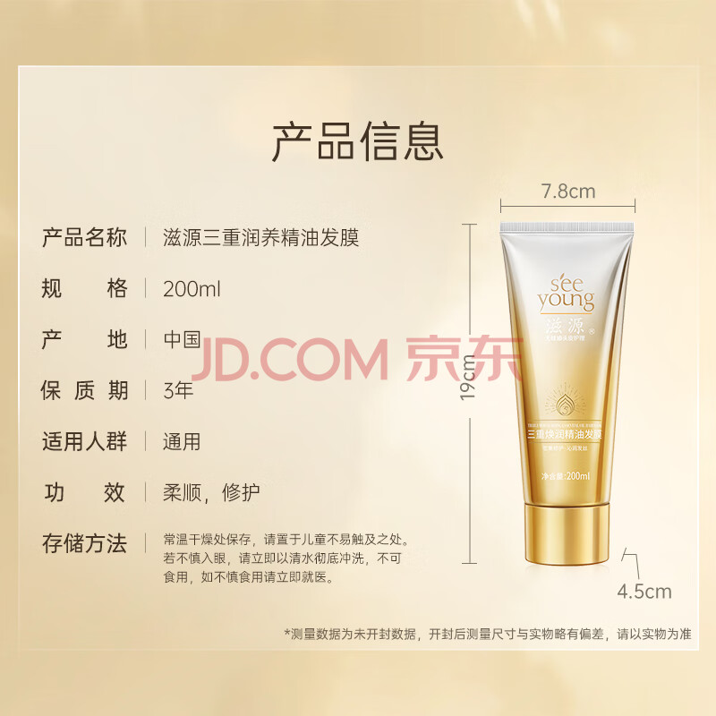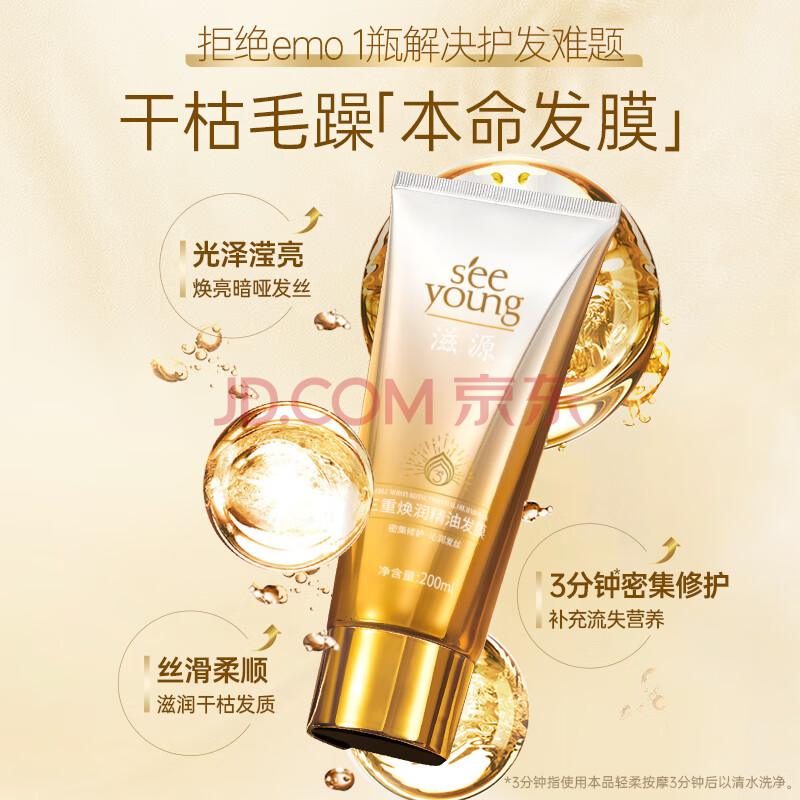 商品相册:滋源精油发膜女修护干枯毛躁头发烫染柔顺3重焕润保湿滋养润发乳200ml第