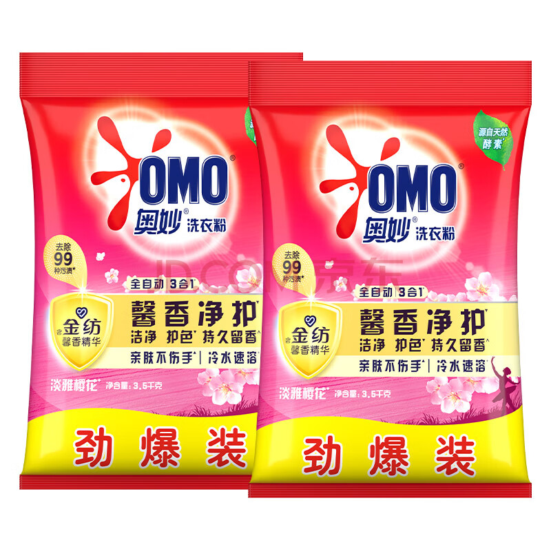 商品相册:奥妙含金纺精华无磷洗衣粉樱花香14斤(3.5KG*2)低泡易漂 硬水通用第