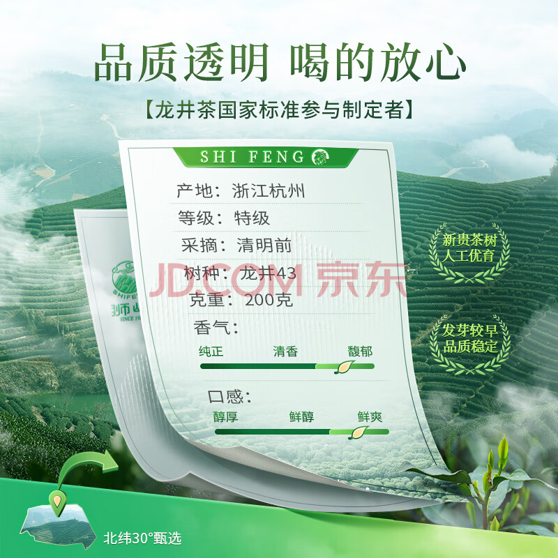商品相册:狮峰牌2026年新茶上市绿茶龙井茶叶明前特级200g纸包装送礼自己喝春茶第
