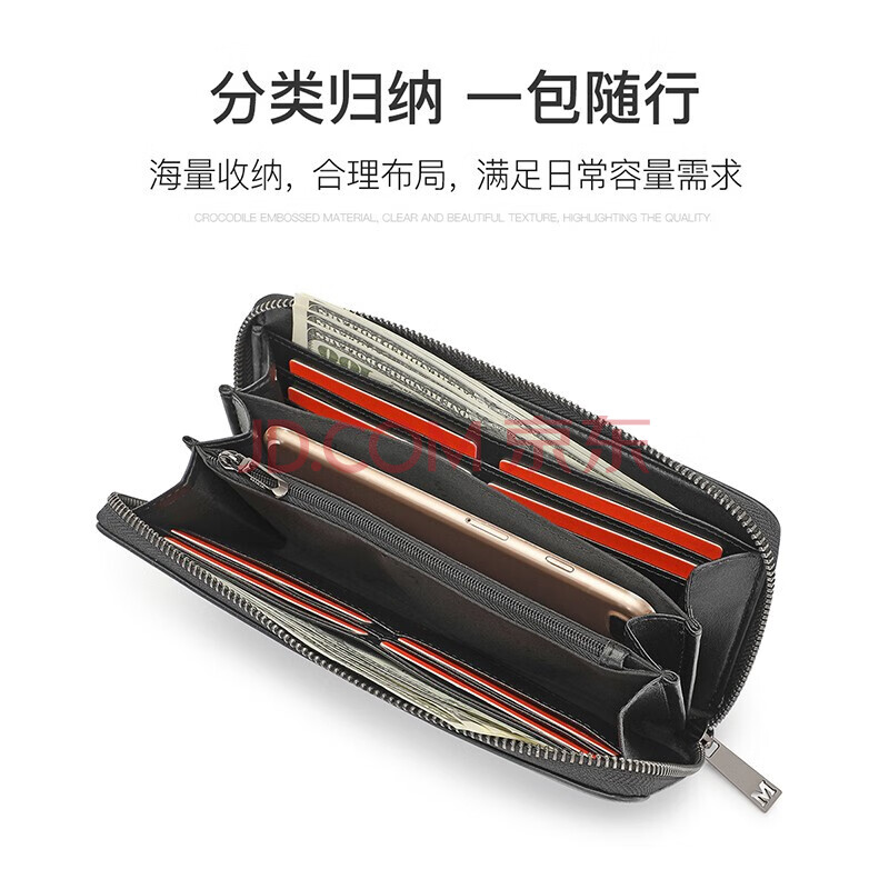 商品相册:稻草人男士手包头层牛皮手拿包多卡位拉链信封包手夹钱包生日礼物第