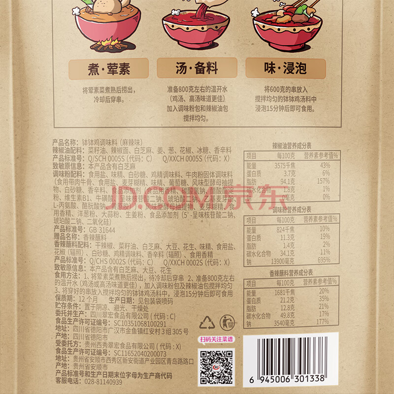 商品相册:翠宏 调味料 钵钵鸡调料323g 乐山冷锅串串香底料 火锅麻辣烫家用第