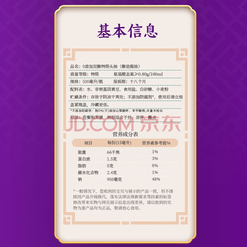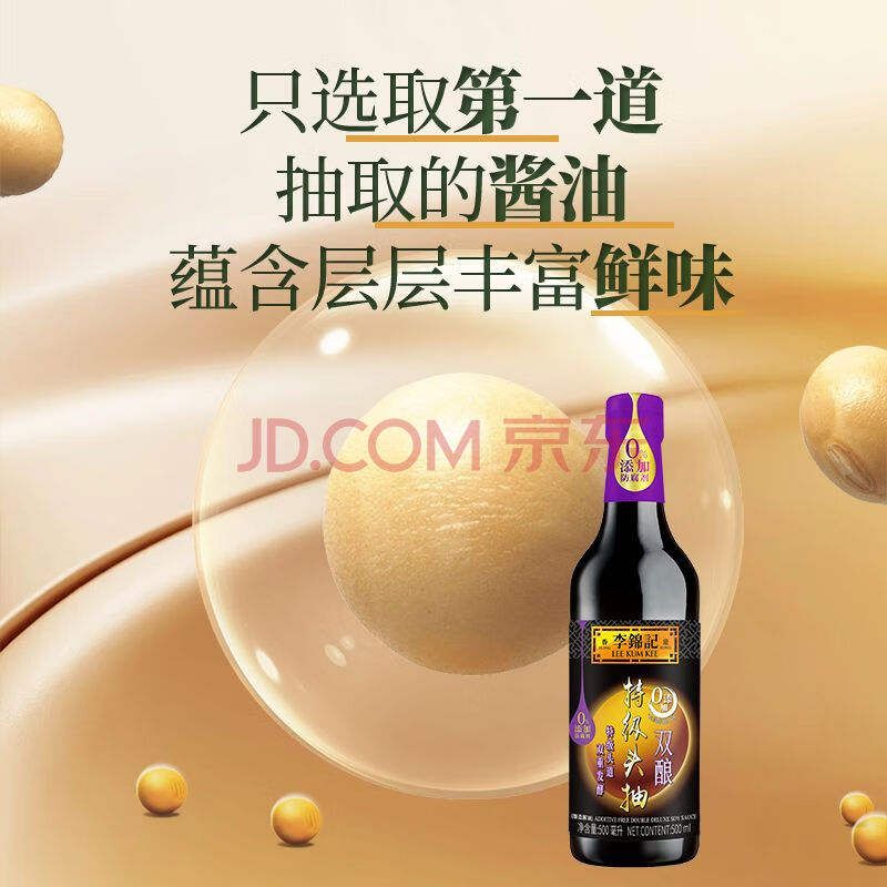 商品相册:李锦记 0添加双酿特级头抽500ml【0添加防腐剂 特级】 酱油生抽第