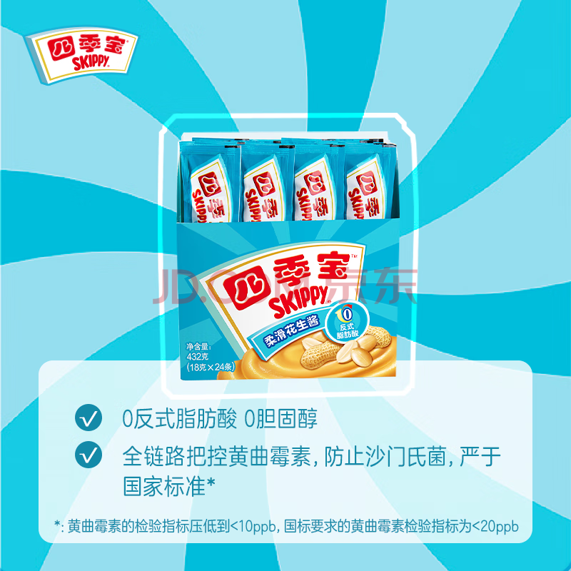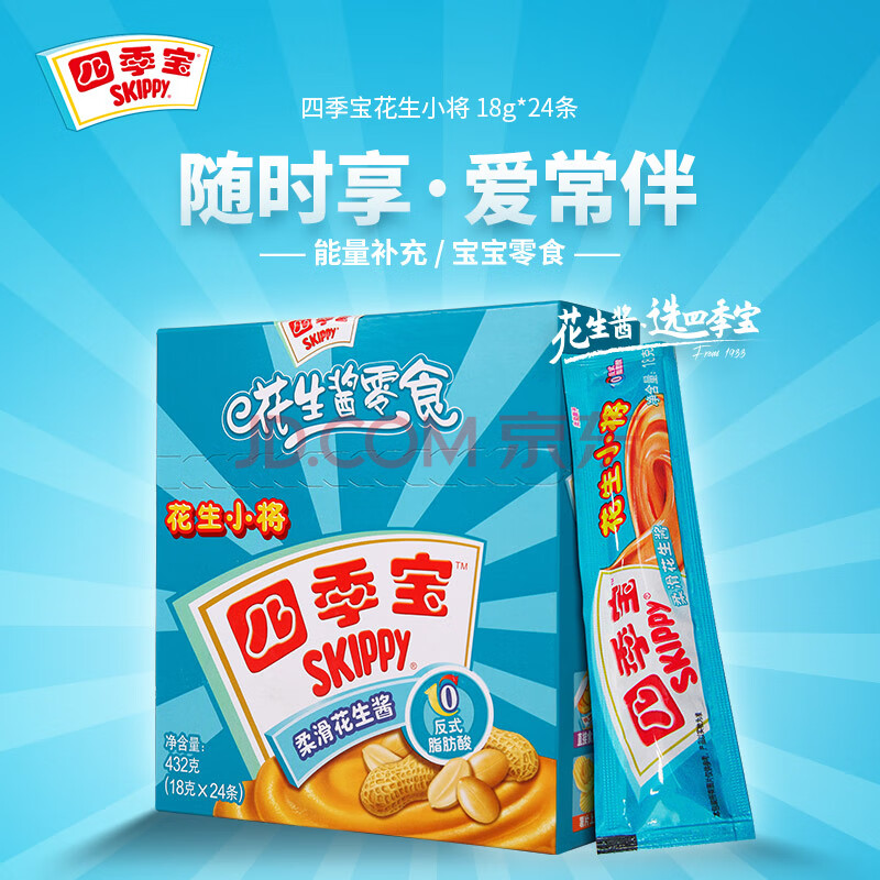 商品相册:四季宝(SKIPPY)花生酱 早餐面包酱 调味酱 花生小将18gX24支/盒第