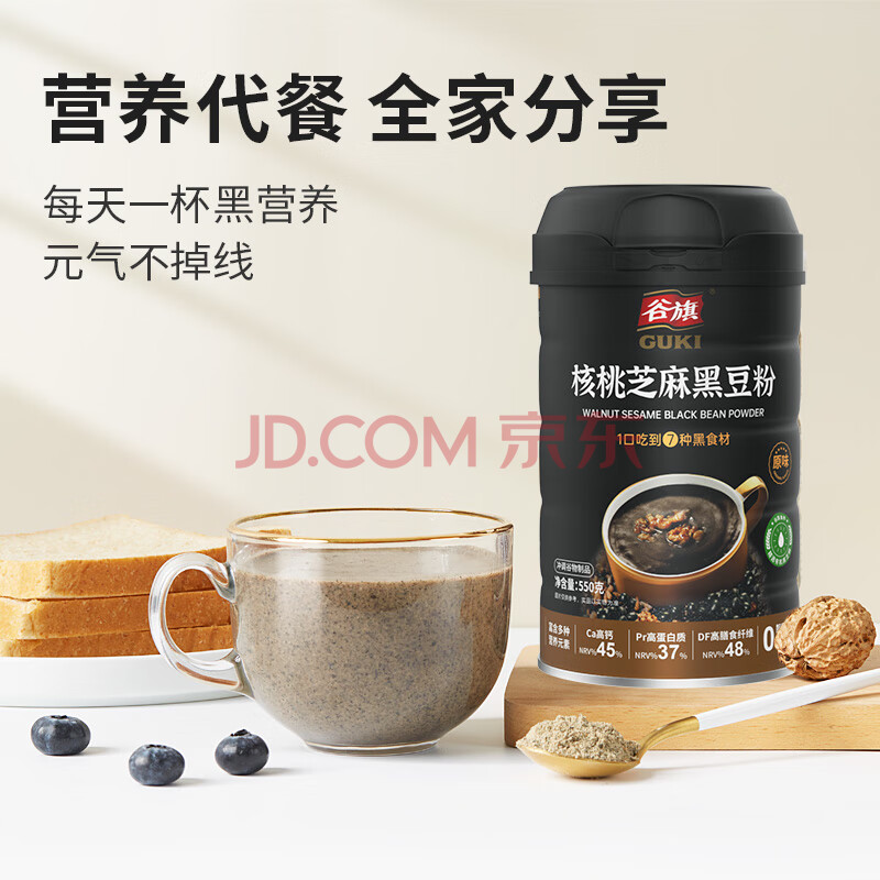 商品相册:谷旗 核桃芝麻黑豆粉550g 桑葚核桃黑豆芝麻糊即食冲饮谷物早餐代餐粉第
