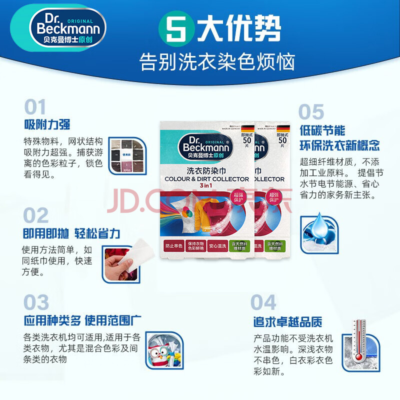 商品相册:贝克曼博士(Dr.Beckmann)洗衣防染巾100片色母片抗染色吸色片混洗防衣服串色 德国进口第