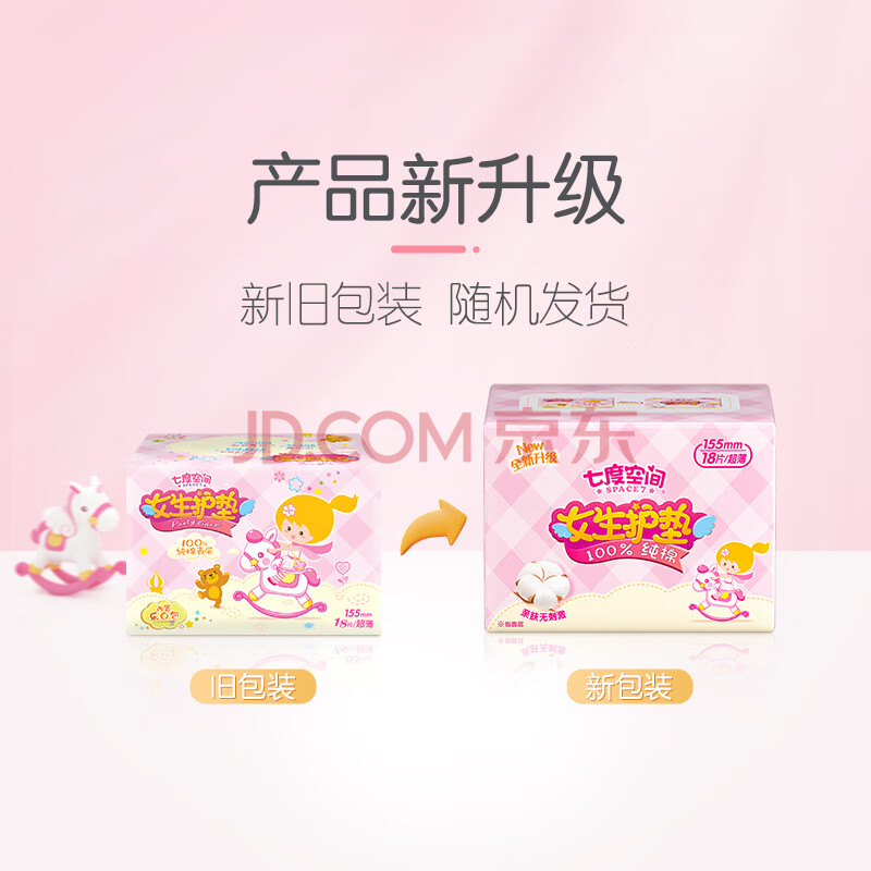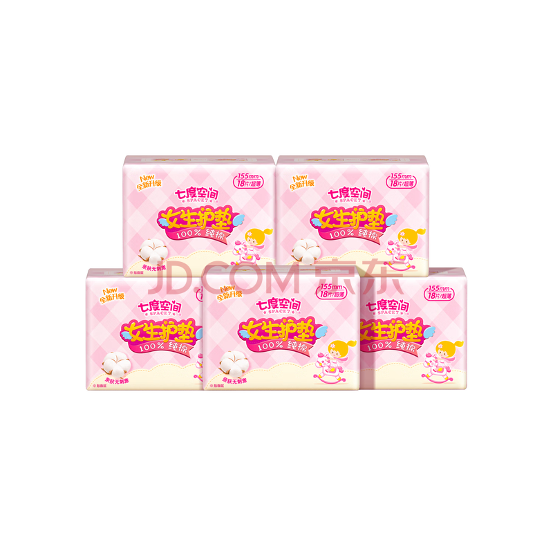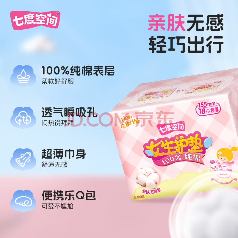 商品相册:七度空间女生护垫纯棉表层超薄乐Q包敏感肌适用155mm*90片【新国标认证】第