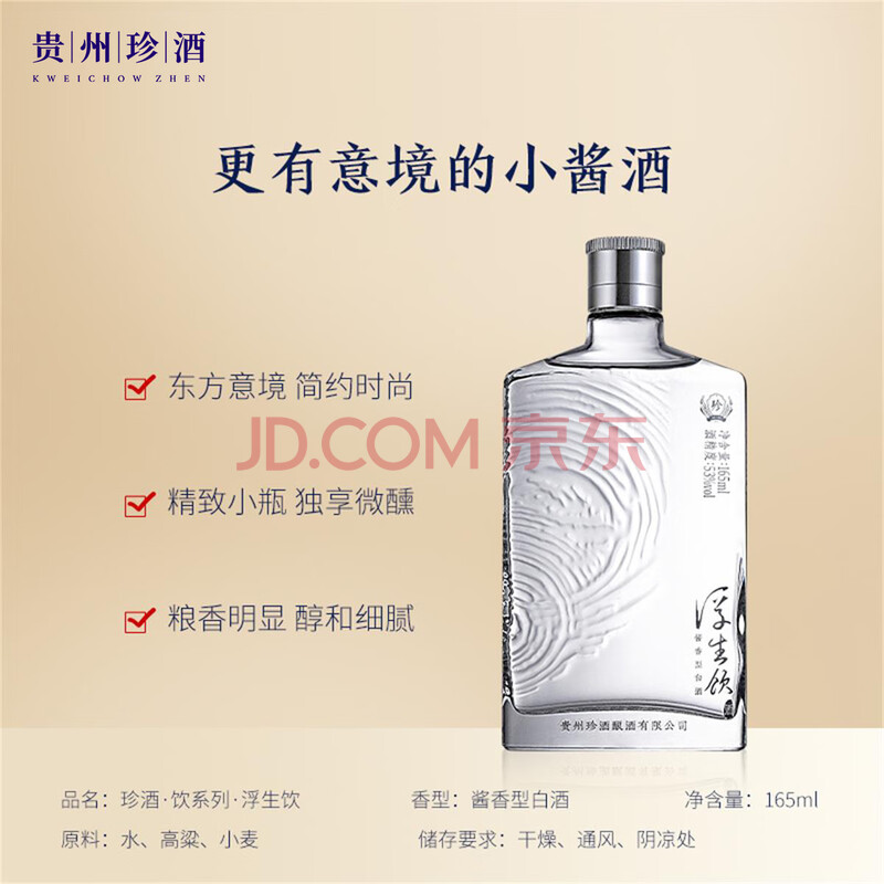 商品相册:珍酒浮生饮 53度酱香型白酒 165ml*4瓶第
