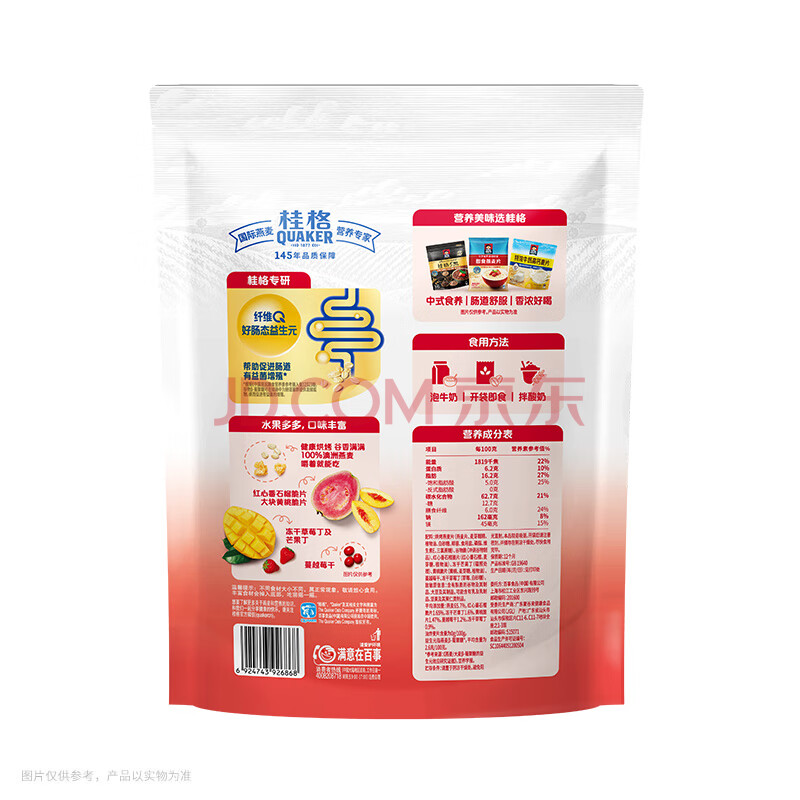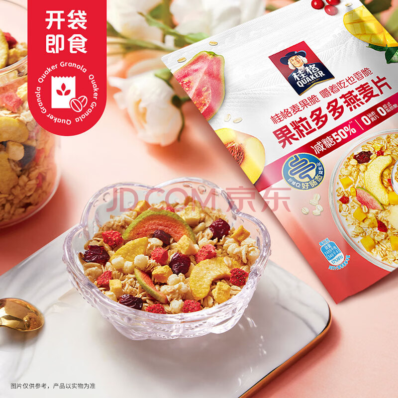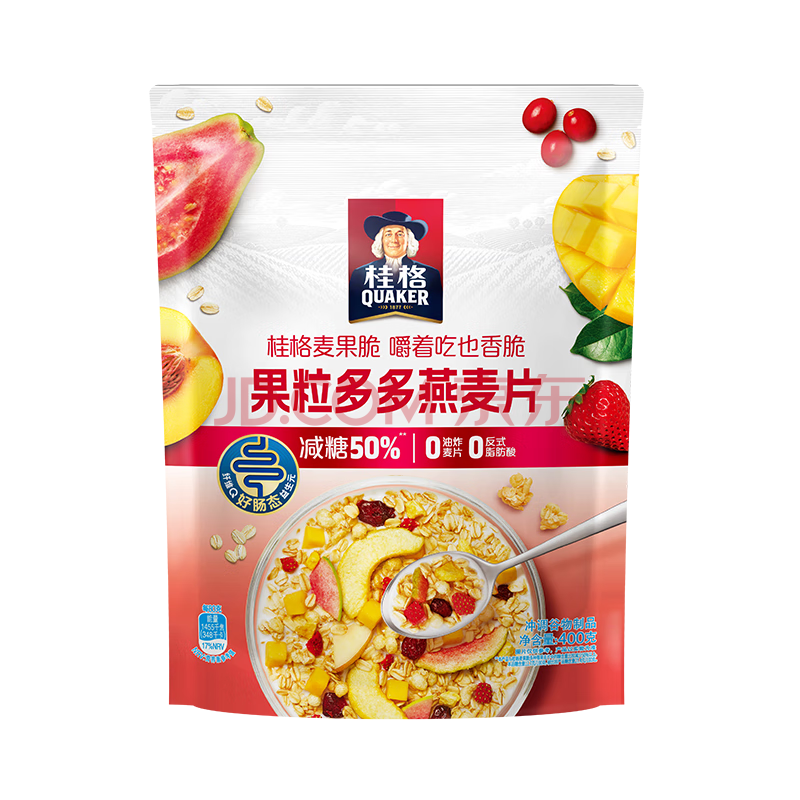 商品相册:桂格(QUAKER)果粒多多燕麦片400克 休闲零食 开袋即食 添加番石榴第