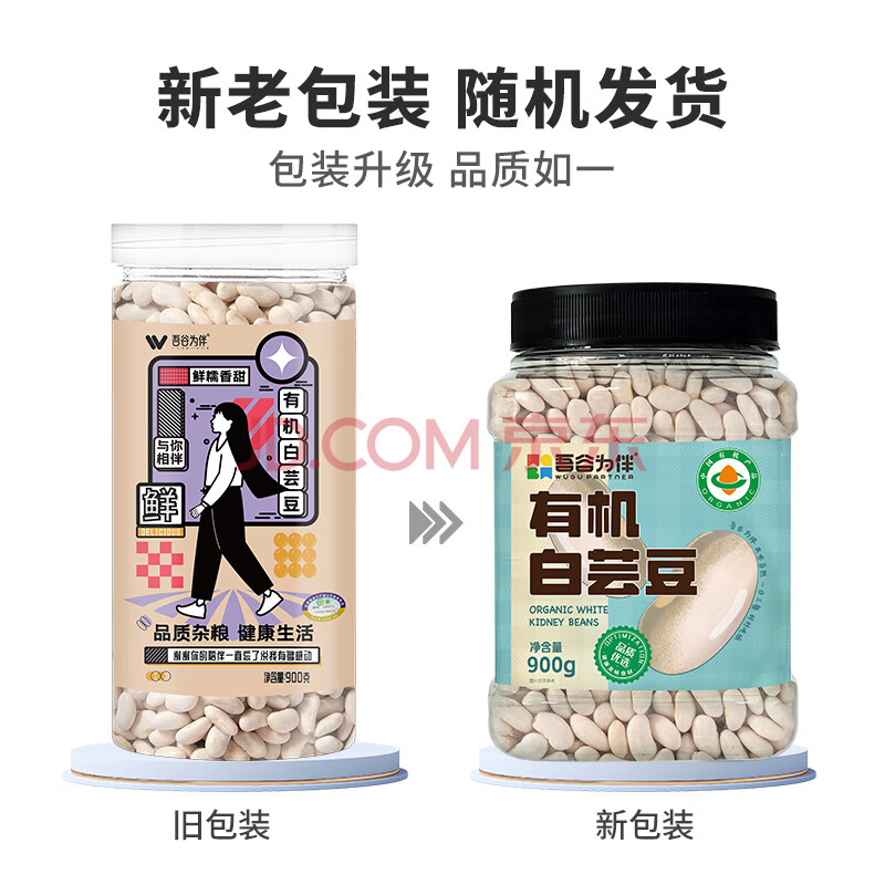 商品相册:吾谷为伴有机白芸豆 1.8斤 小白芸豆 五谷杂粮 白腰豆 菜豆 饭豆 罐装第