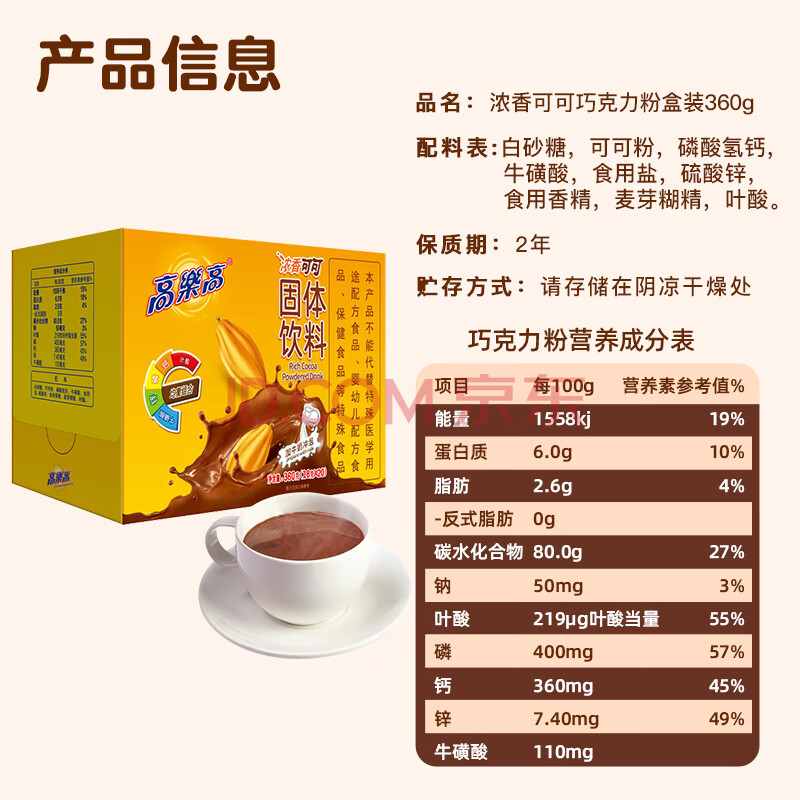 商品相册:高乐高 可可粉 浓香巧克力粉牛奶即食早餐伴侣 健康食品 360g/盒第