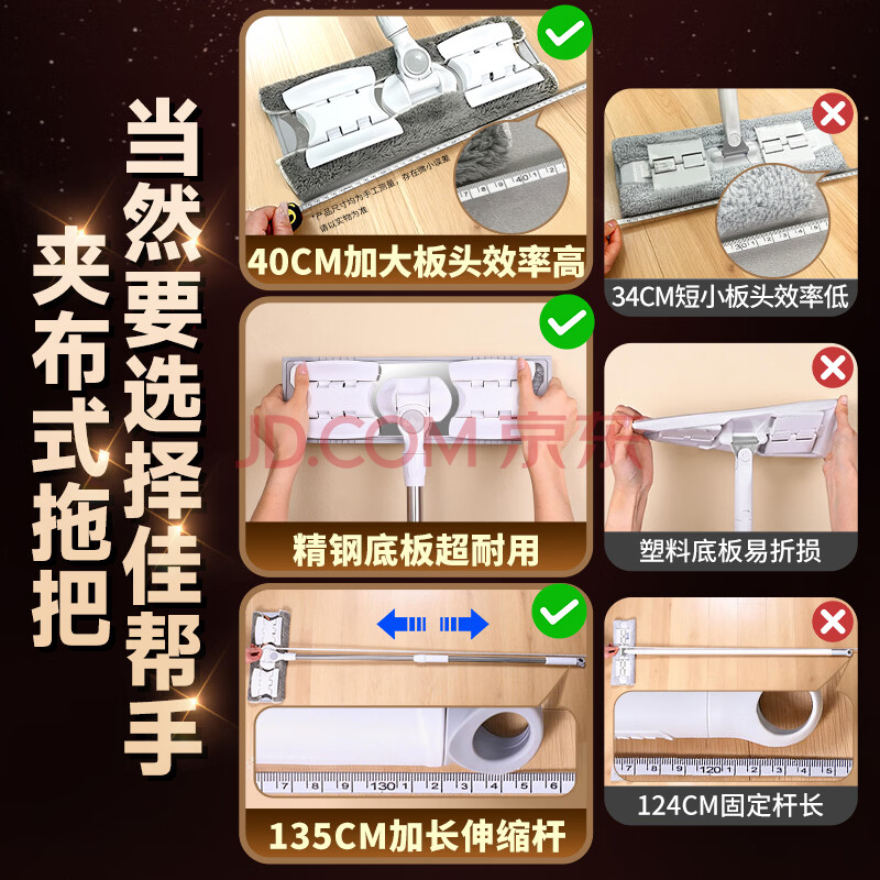 商品相册:佳帮手夹布平板拖把40cm1布家用一拖净免手洗2026洗脸巾神器老式墩拖布第