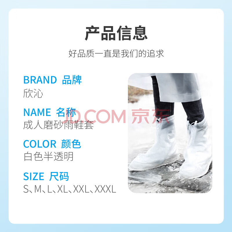 商品相册:欣沁雨鞋套雨靴套加厚底防水鞋套雨天防滑雨天骑行磨砂白 3XL(45-46)第