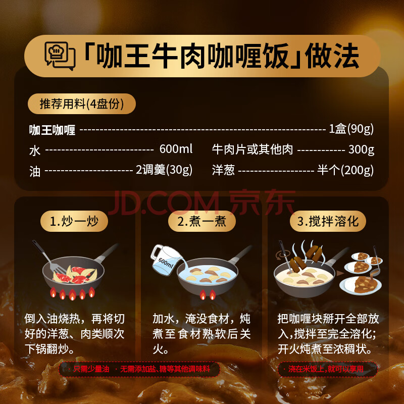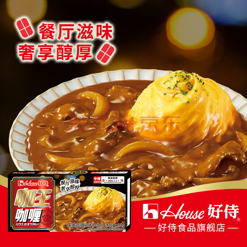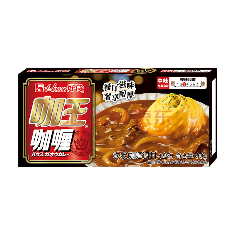 商品相册:好侍(House)咖王咖喱块 3度中辣 90g/盒 日式块状咖喱调味料 2-4人份第