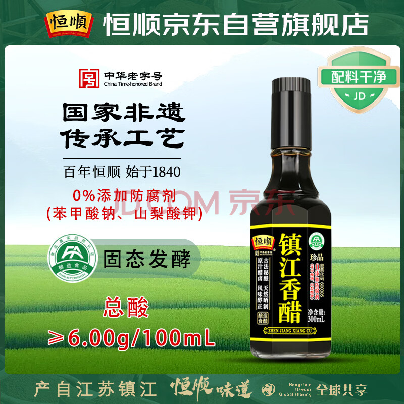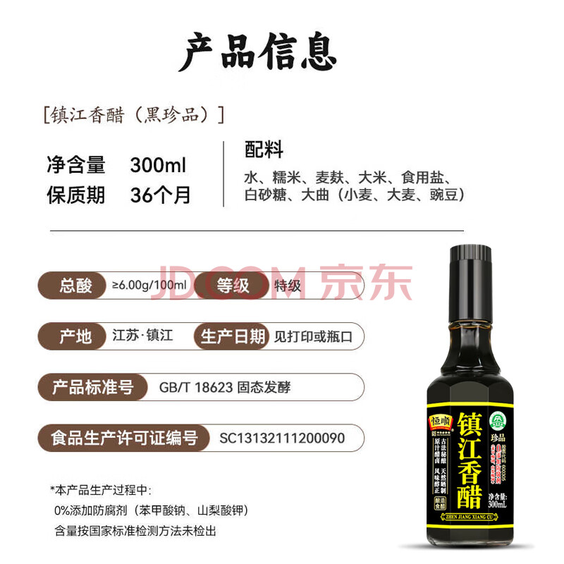 商品相册:恒顺镇江香醋 珍品 特级 6度 300ml 天然晒制 不添加防腐剂第