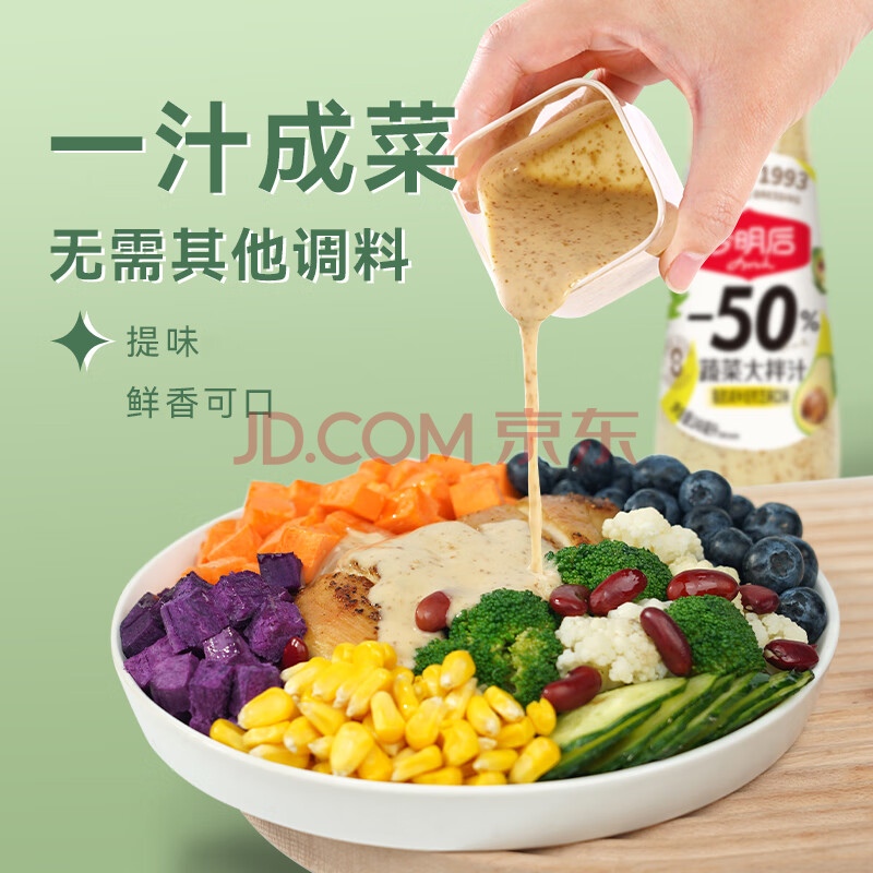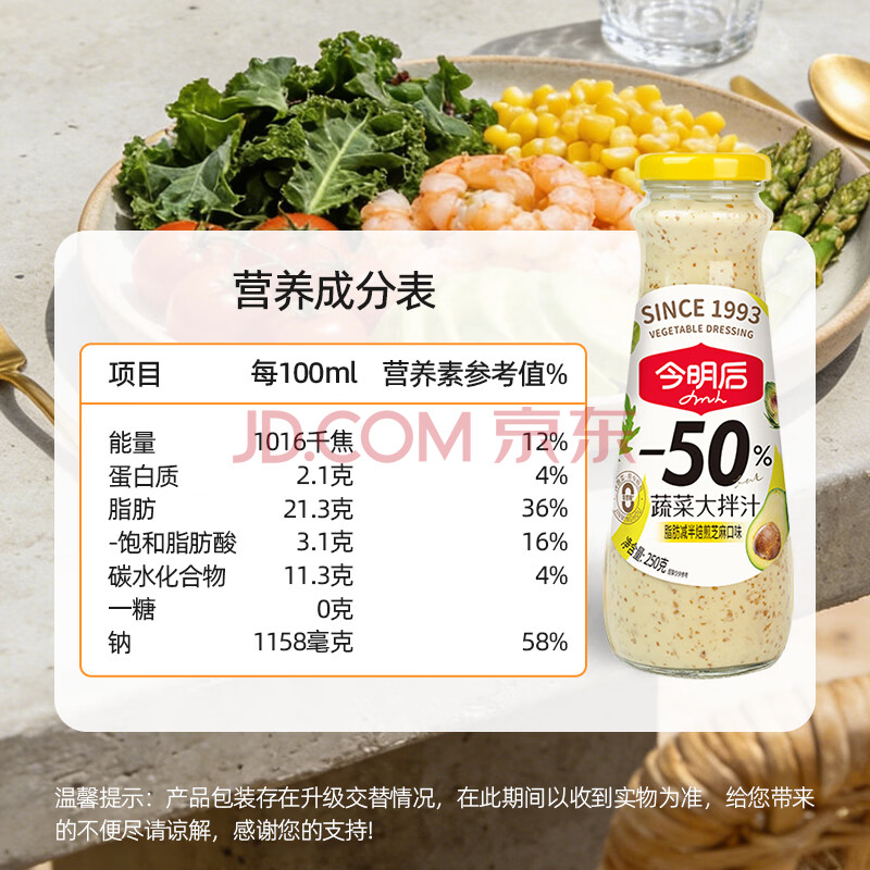 商品相册:今明后 0蔗糖沙拉酱焙煎芝麻沙拉汁蔬菜沙拉大拌汁脂调味品料 248ml*1第