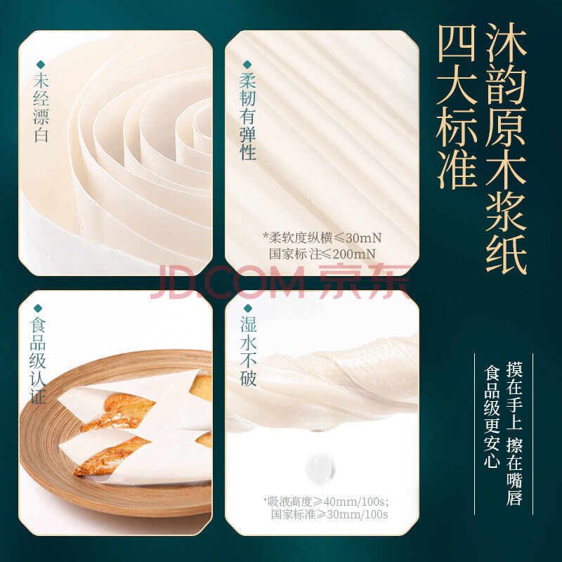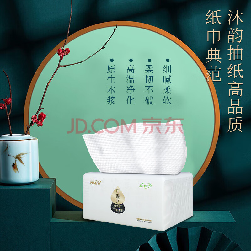 商品相册:沐韵 抽纸水滴子S码40包 可湿水细腻亲肤餐巾纸纸巾 120*180*3层 210张/包 40包/箱 2箱/件第