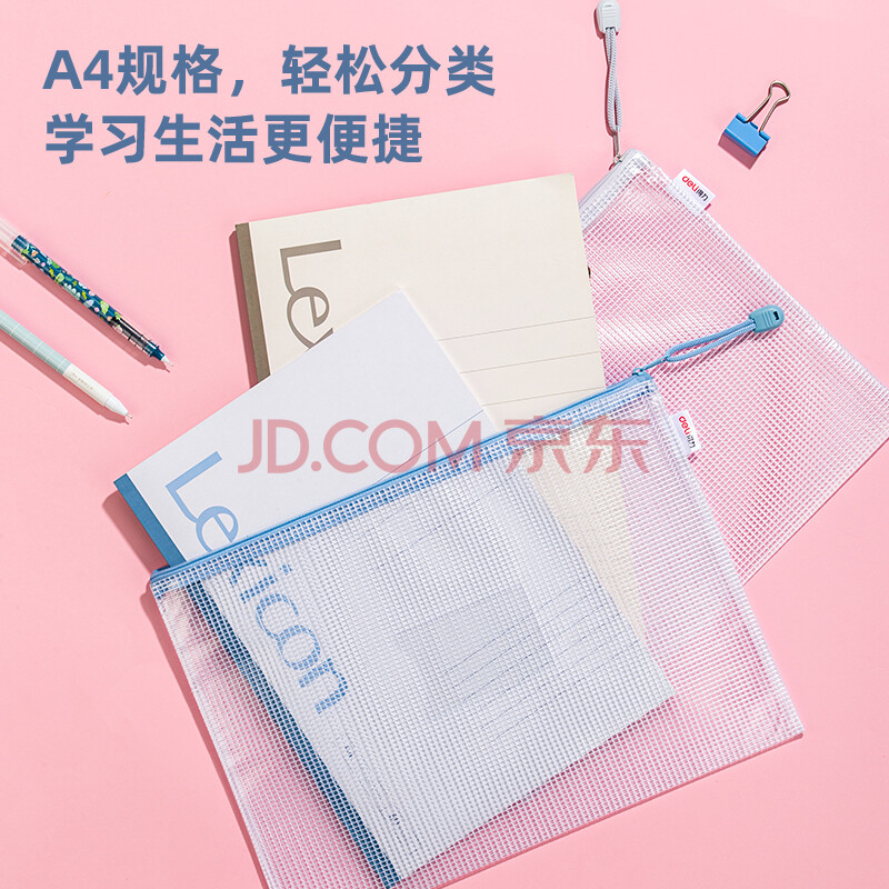 商品相册:得力(deli)5只A4防水网格学科拉链袋文件袋学生彩色文件袋标签款 莫兰迪色系混色63484第