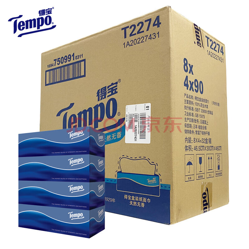 商品相册:得宝 盒装抽纸 3层90抽32盒整箱 高端面巾纸 纸巾 T2274第