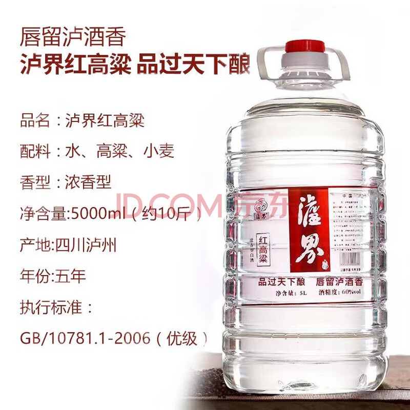 商品相册:泸界粮食酒 泸州红高粱60度浓香型桶装高度纯粮食白酒5L泡药酒口粮酒第