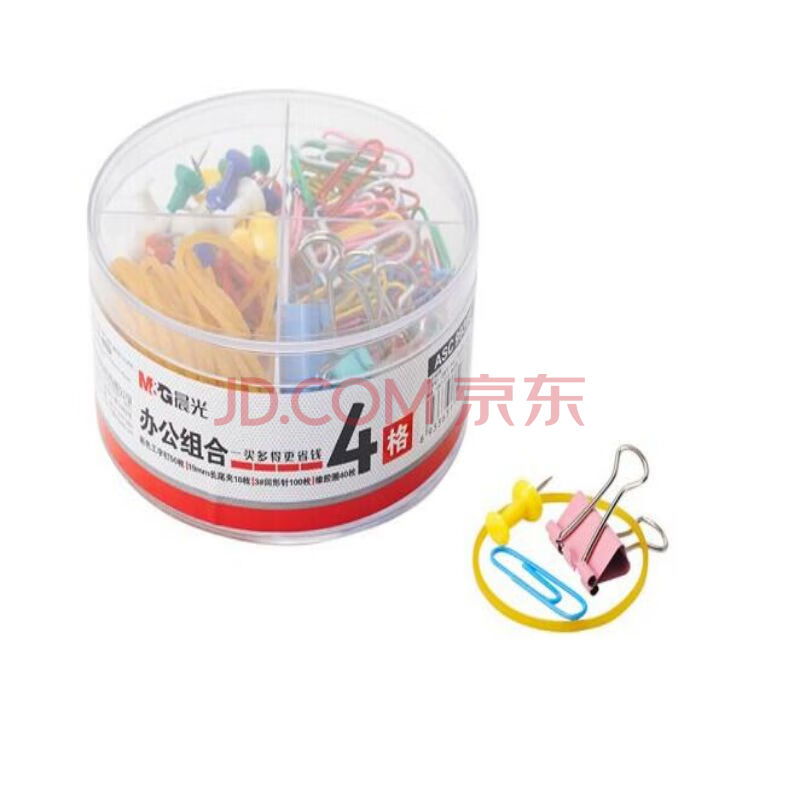 商品相册:晨光(M&G)ASC99360 办公套装(彩色工字钉50枚+橡皮圈40枚+3#彩色回形针100枚+19mm彩色长尾夹10枚)1盒装第