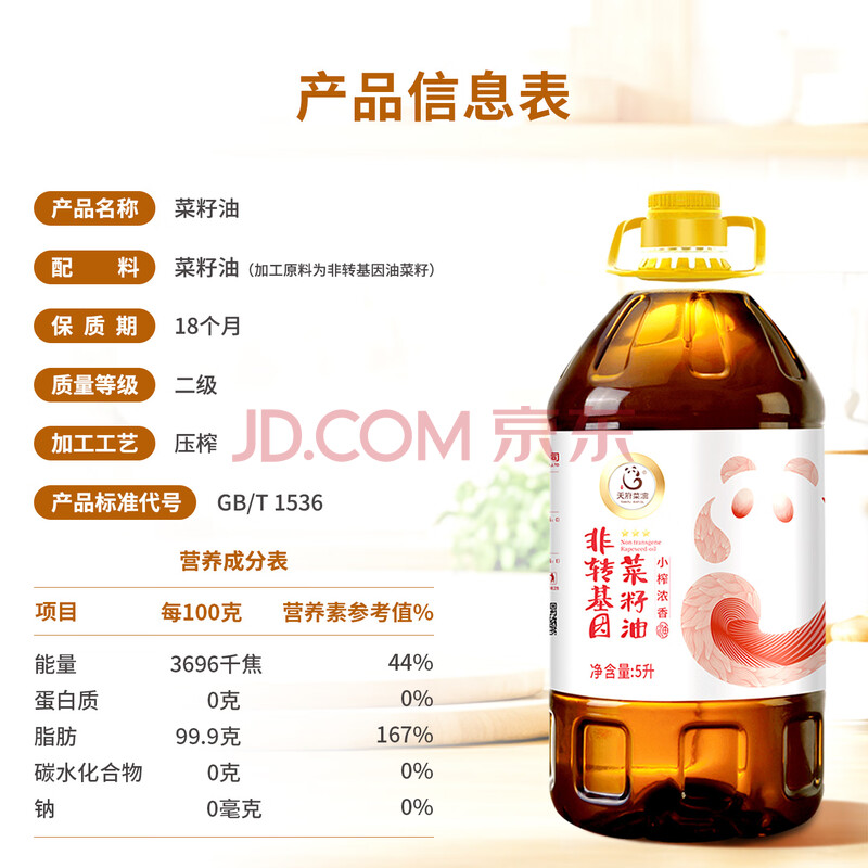 商品相册:天府菜油小榨浓香菜籽油 5L(三星)非转基因 食用油 四川风味国企出品第