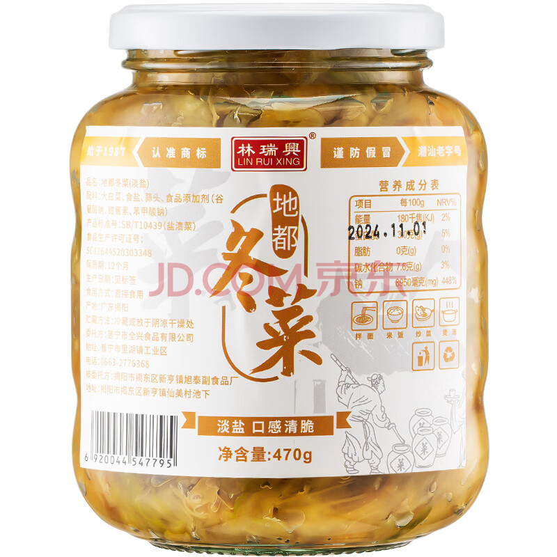 商品相册:林瑞兴 淡盐地都冬菜 470g 口感清脆 潮汕风味 煲汤煮粥调味配菜第