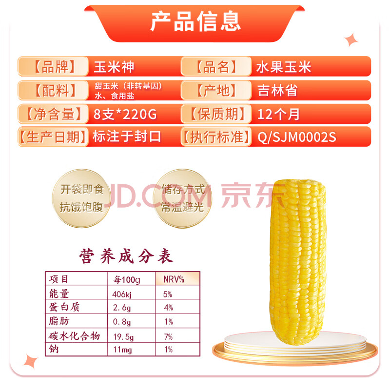 商品相册:玉米神水果甜玉米棒8根1800g/3.6斤甜嫩新鲜开袋即食真空装低脂东北粗粮第