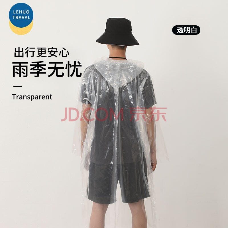 商品相册:乐活旅行一次性雨衣透明便携加厚户外登山徒步骑行防暴雨连体成人单人雨披第