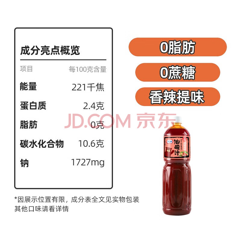 商品相册:百利 0脂肪0蔗糖香辣风味油醋沙拉汁 家庭西式沙拉酱 1.5L第
