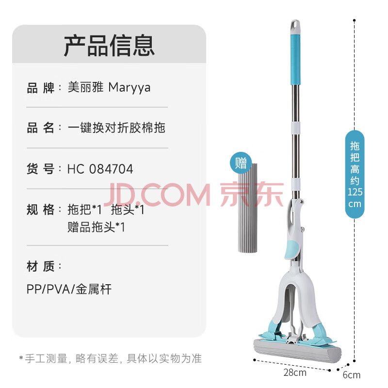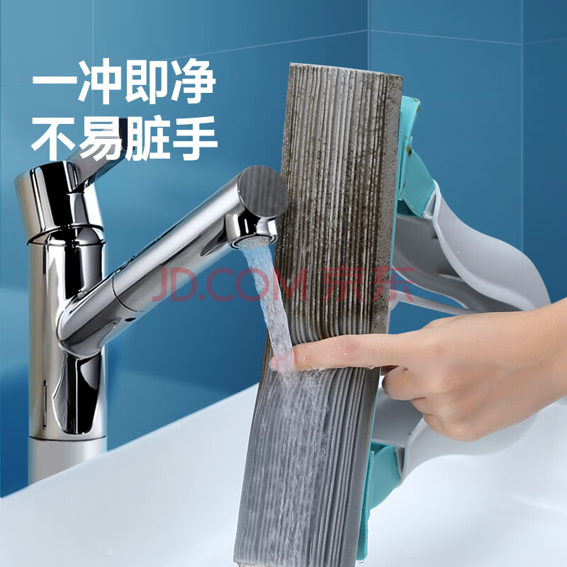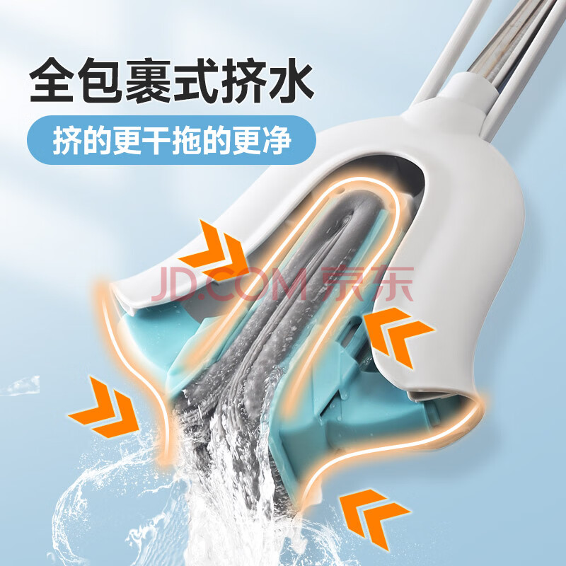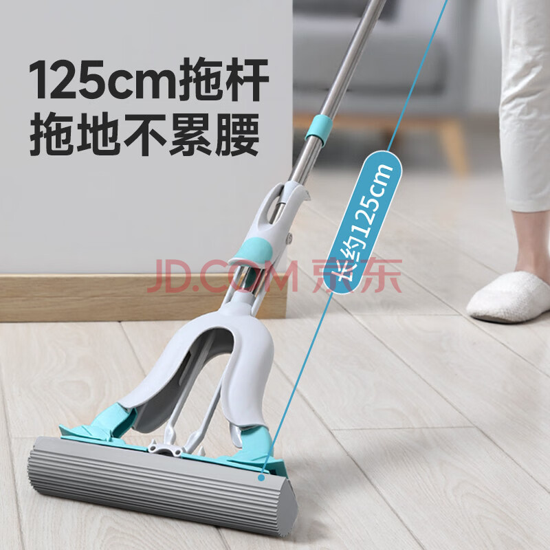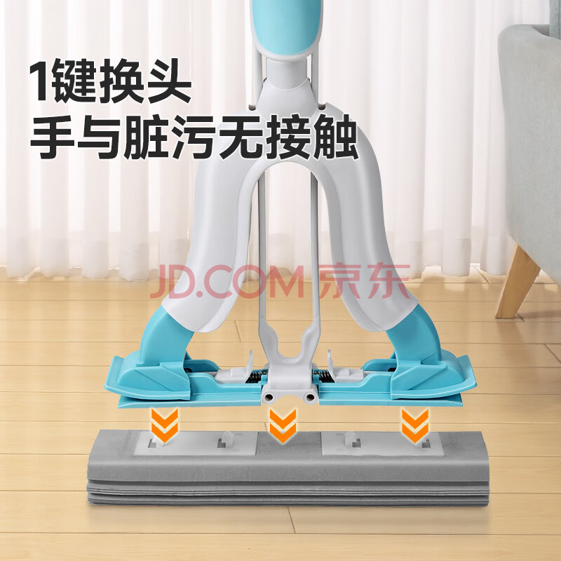 商品相册:美丽雅胶棉拖把28cm2拖头一键换头吸水海绵家用一拖净免手洗卫生间拖地第